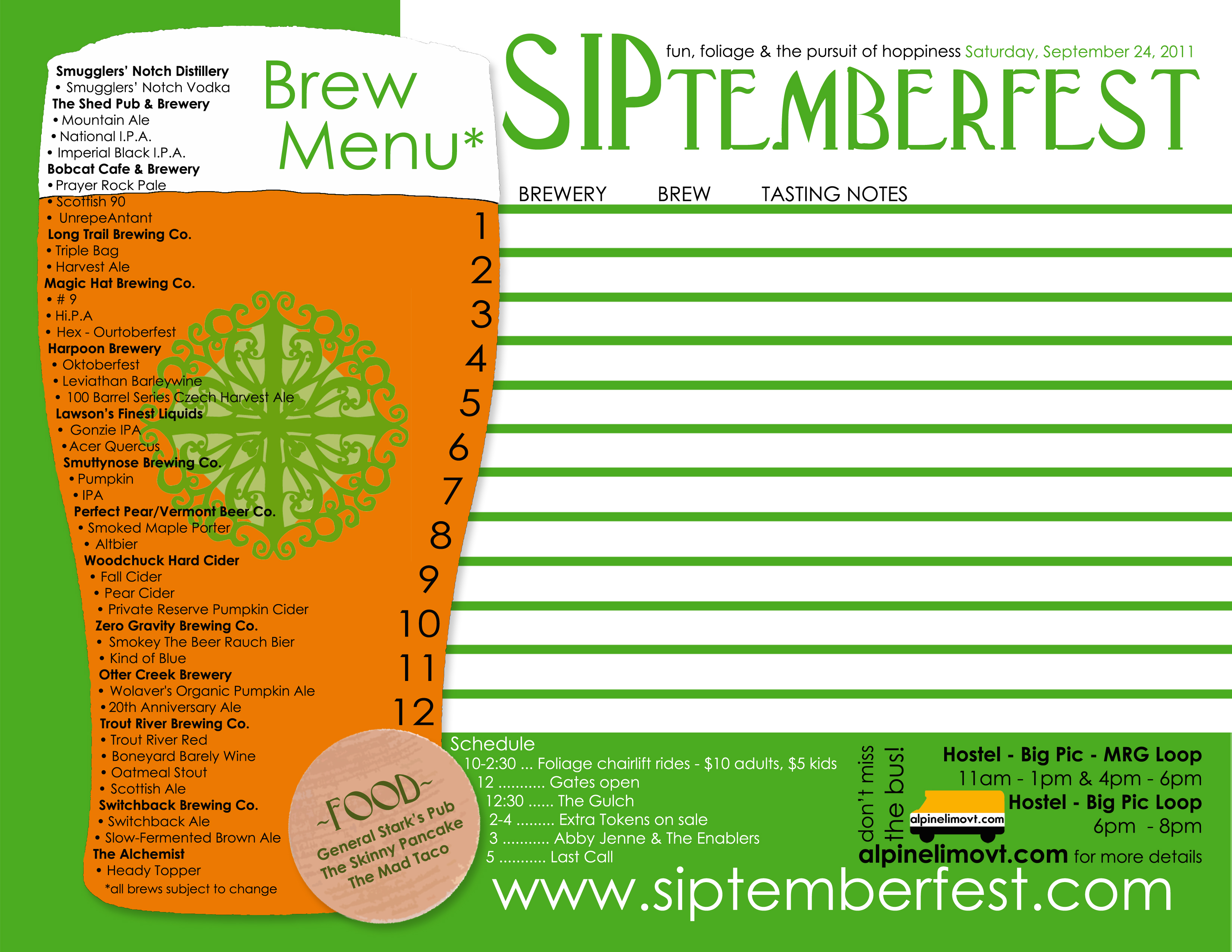 Here’s the break down for SIPtemberfest, Saturday, 24, 2011